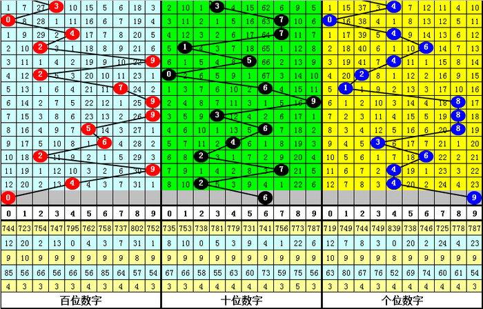 体彩排列三最近10周星期一奖号分别为:291、141、009、045、590、851、115、195、334、998,各奖号属性详见下表: